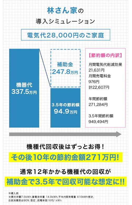 補助金の活用で、3.5年で初期費用の回収が可能です。